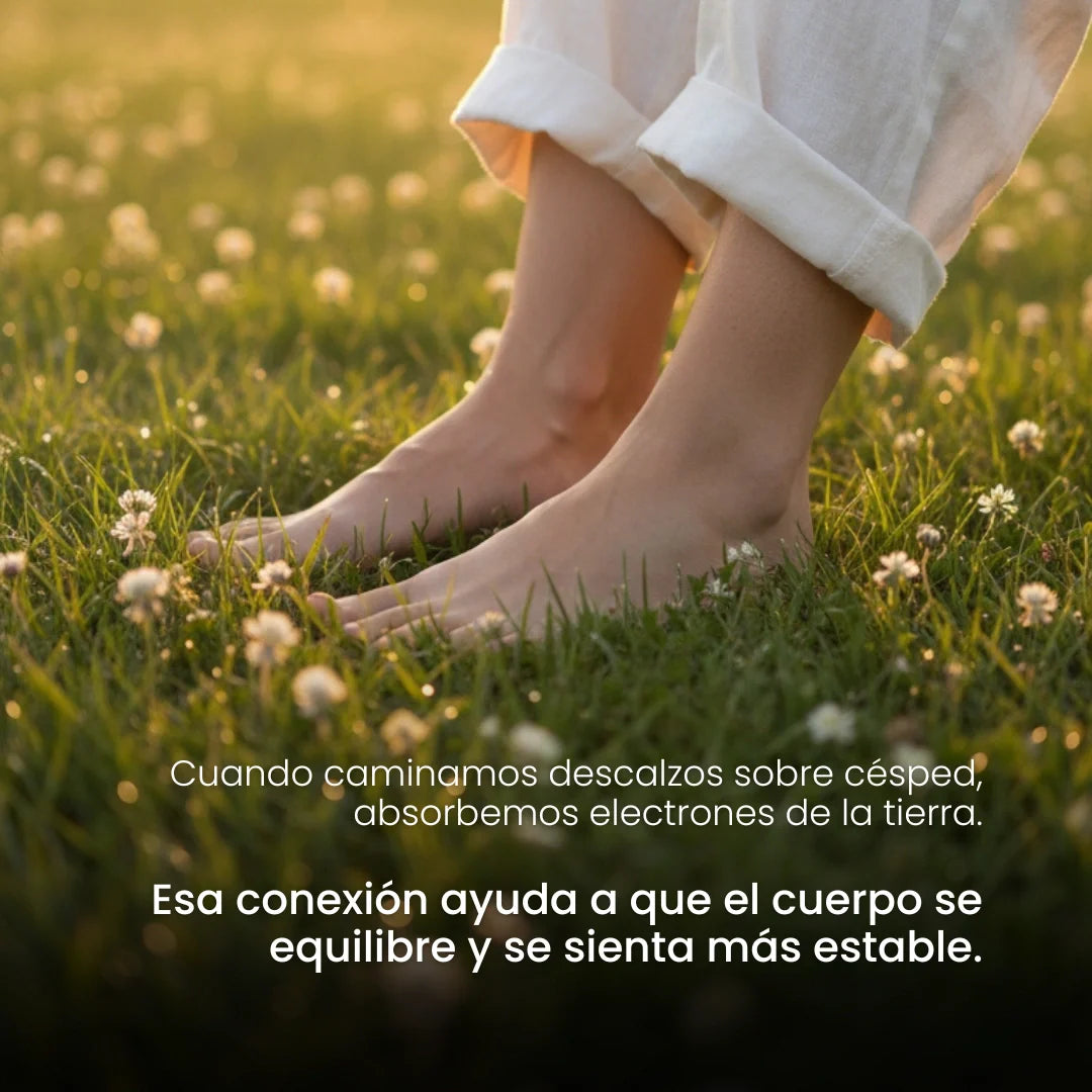 La esterilla se conecta a la parte conectada a tierra del sistema eléctrico de tu hogar. Cuando tu piel toca el lado negro, electrones de la Tierra fluyen hacia tu cuerpo, ayudando a neutralizar el exceso de carga positiva. Esto restaura tu equilibrio eléctrico natural y apoya el bienestar general.